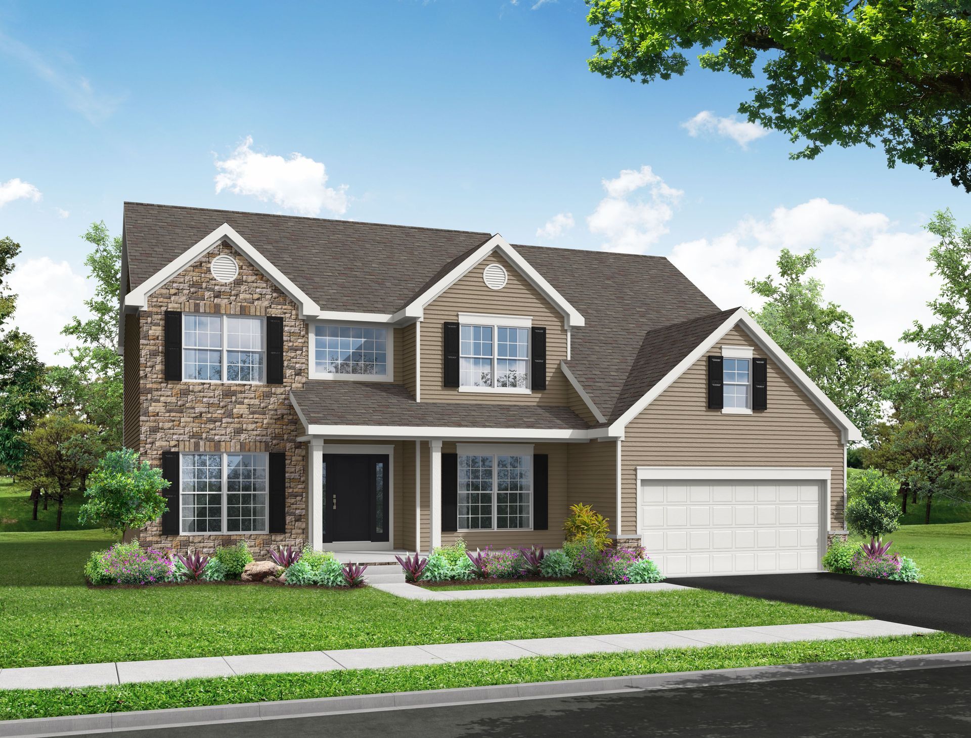 The McKenzie is a 2 story floor plan with four bedrooms and 2 ½ baths, totaling over 2,800 square feet with a 2 car garage. The two-story great room merges seamlessly with the luxury kitchen, creating a true heart of your home. This home plan has two beautiful elevations available for added customization so that your home is as unique as you.